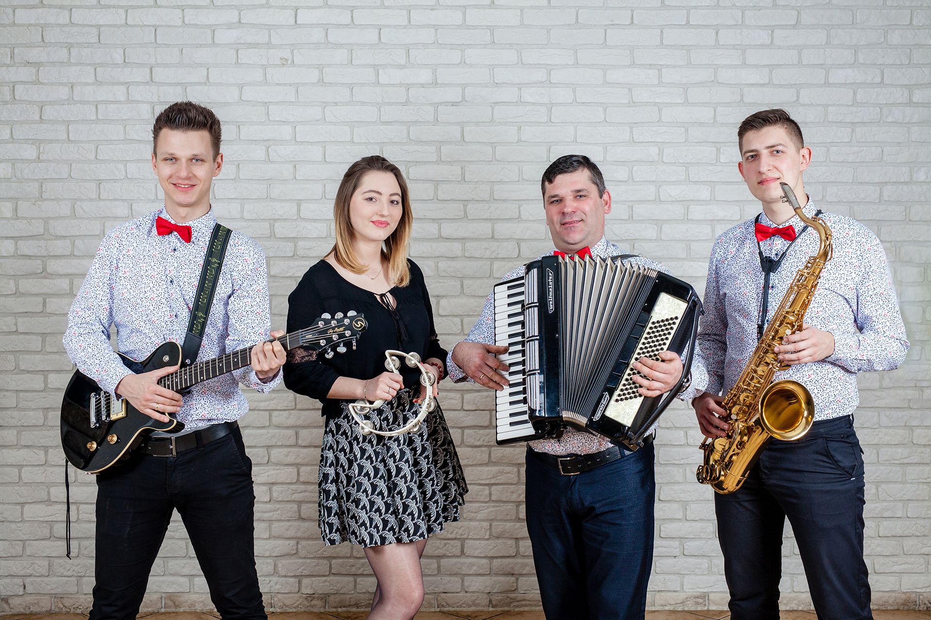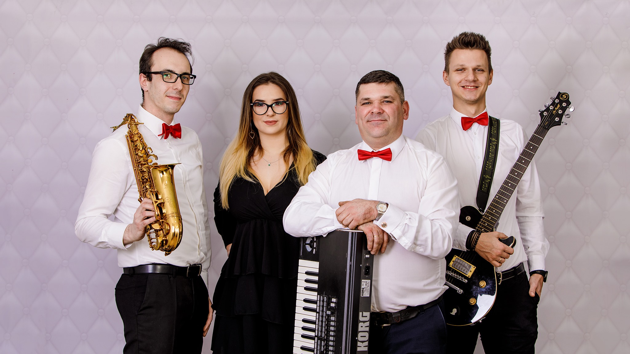 Jesteśmy zespołem muzycznym, składającym się z utalentowanych muzyków i wokalistów pełnych pasji i doświadczenia, który zamieni każdą uroczystość w muzyczną ucztę największego formatu. Od wielu lat zajmujemy się profesjonalną oprawą muzyczną weseli, bankietów, imprez firmowych, studniówek i innych imprez okolicznościowych. Muzyka jest naszą pasją, dlatego do każdego zlecenia podchodzimy z pełnym zaangażowaniem, czerpiąc przyjemność z każdego zagranego dźwięku. Naszym występom scenicznym towarzyszy zawsze pozytywna energia, która udziela się Gościom imprezy, co stanowi nasz przepis na szampańską zabawę i pełny parkiet świetnie bawiących się uczestników. Nasz zespół weselny ma ogromne możliwości repertuarowe dzięki szerokiemu instrumentarium składającego się z: gitar, saksofonów akordeonu, instrumentów perkusyjnych i dwóch wokalistów. Posiadamy szeroki repertuar kilkuset utworów – od znanych hitów prosto z rozgłośni radiowych aż po mniej znane kompozycje, które wyciągną na parkiet nawet najbardziej wybredną publikę. Gramy szlagiery różnych gatunków – od popu, przez rock i muzykę lat 60,70, 80 i 90-tych aż po hity disco-polo. Kilkunastoletnie doświadczenie w graniu na różnych scenach jest gwarancją profesjonalizmu i świetnej zabawy, która będzie trwać do późnych godzin nocnych. Zajmujemy się kompleksową oprawą muzyczną – od montażu profesjonalnego nagłośnienia, poprzez oryginalne stylizacje aż po dobór repertuaru ustalonego z Organizatorem. Takie podejście jest zawsze doceniane przez naszych klientów i gwarantuje szampańską zabawę przy ulubionych utworach w oryginalnych interpretacjach naszego zespołu weselnego.